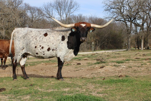 Baby Doll is out of our twisty horn Cow Tierra Eot and Grizzly Tuff Chex this combination will produce the horn. She has a bull calf at side by Grizzly Tuff Chex. We plan to breed her to RRR Caprocks Edge for a spring 2021 calf.