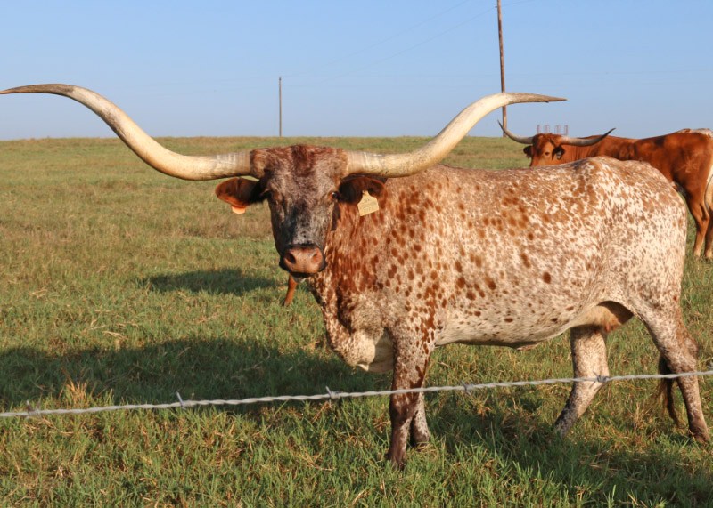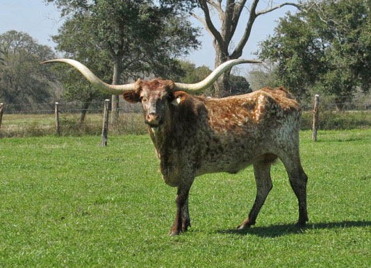 One of the best cows in the longhorn business. Has everyhing that breeders are looking for, size, color, conformation and tons of twisty horn. She has produced a number of great calves for us.