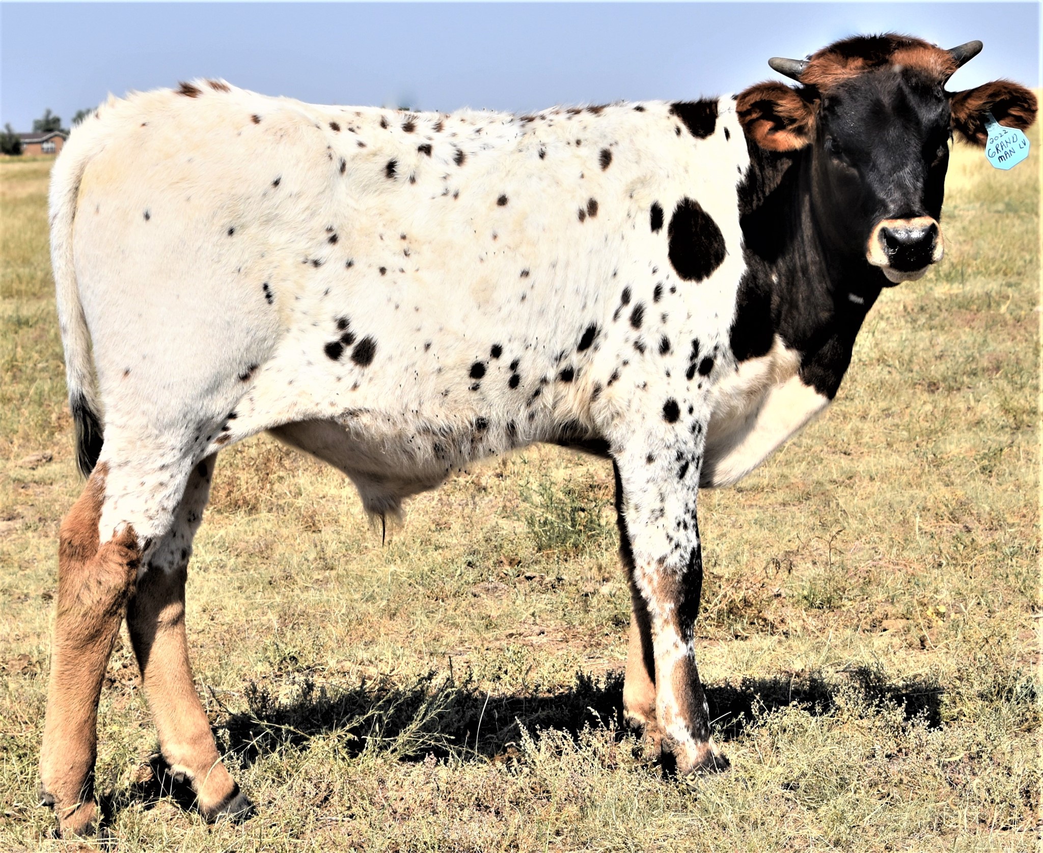 He is a nice balanced,tri colored young bull with lots of potential.He is very tall for his age and has the Parker brown coloring on some of his spots.