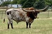 This is once impressive bull! Not only does he have horn but look at all that flash! Breeders work for years to create this combination of horn, conformation, and color. If you are handing out scratches, he will hang out with you forever. This gentle soul is an easy keeper. He comes from strong milkers and great mothers. This is one bull that anyone can be proud to call their herd sire.