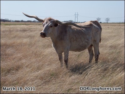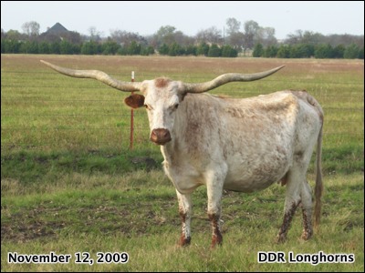 Look at this beautiful cow! Dora has fantastic tight twist in her horns that are just amazing. She has just over 72" TTT even with all of that twist. Dora passed away on January 21, 2013 just shy of her 20th birthday.