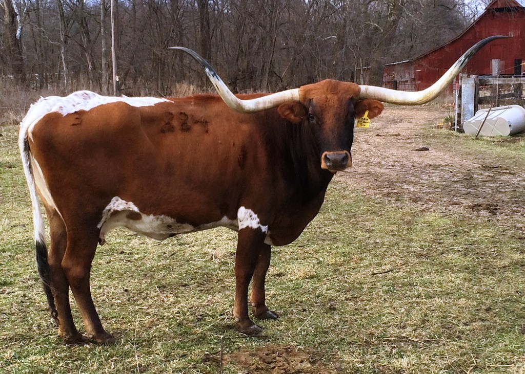Auzzie's Tierra is a huge cow weighing over 1400 pounds with nearly 75 inchs TT of horn. A loaded pedigree with Dixie Creole, JP Grand Slam and Boomerang. Her sire is a 2000 lb bull with a ton of horn.