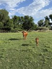 94.5 TTT and 121.5 total horn with 7.5” off of right tip. Exposed to 2022 Ultimate Bull, JH Rural Blackout for a spring 26 calf. Sells with heifer at side by JH Rural Blackout at the 2025 Horn Showcase.