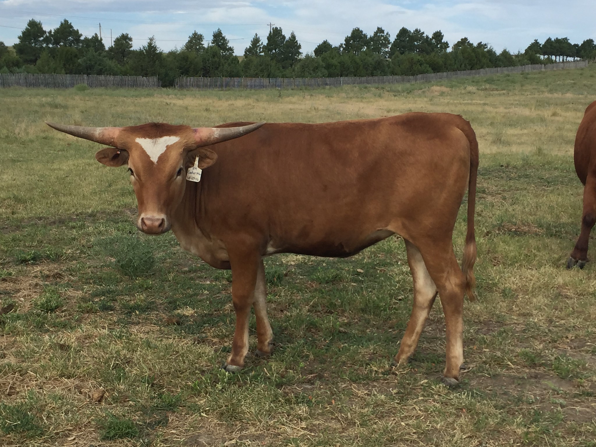 A gentle, young daughter of M2 Rifleman and Cooter Mountain. 3 time world champion Grand Dam on Bottom and over 90”TTT Grand Dam on the Top. Kiowa is packed with cow power. This sweet heifer is being exposed to our colorful herd sire, Bwana Chex.