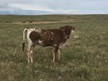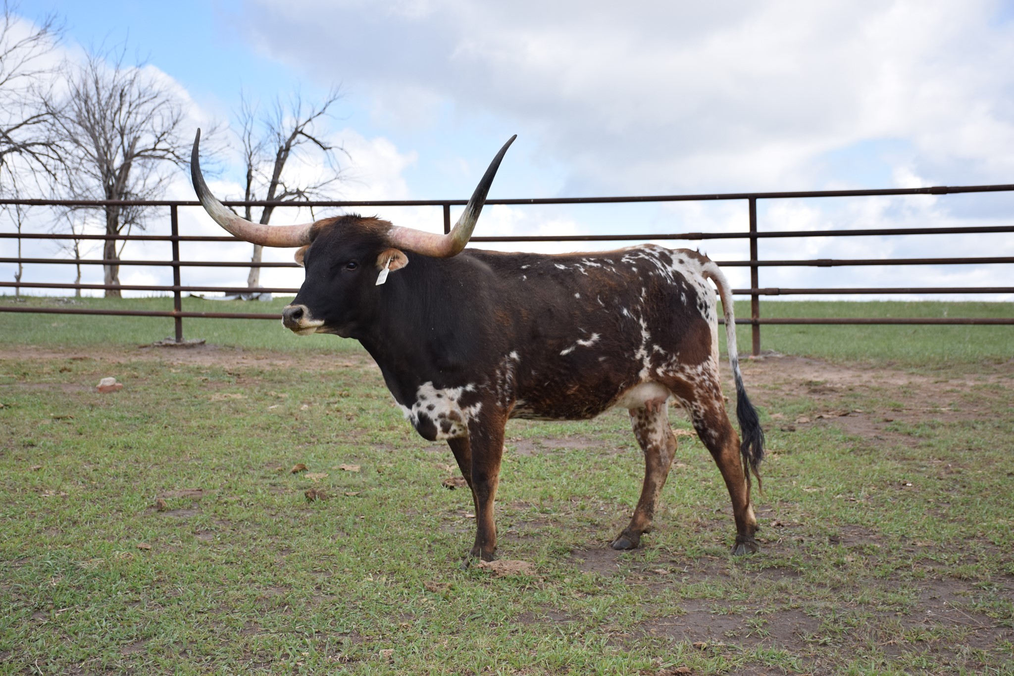 A big horned young cow that is confirmed bred to Bryant Cattle Company's Ragnar bull for a June 2022 calf.